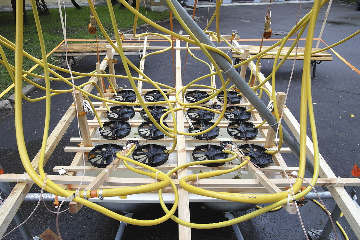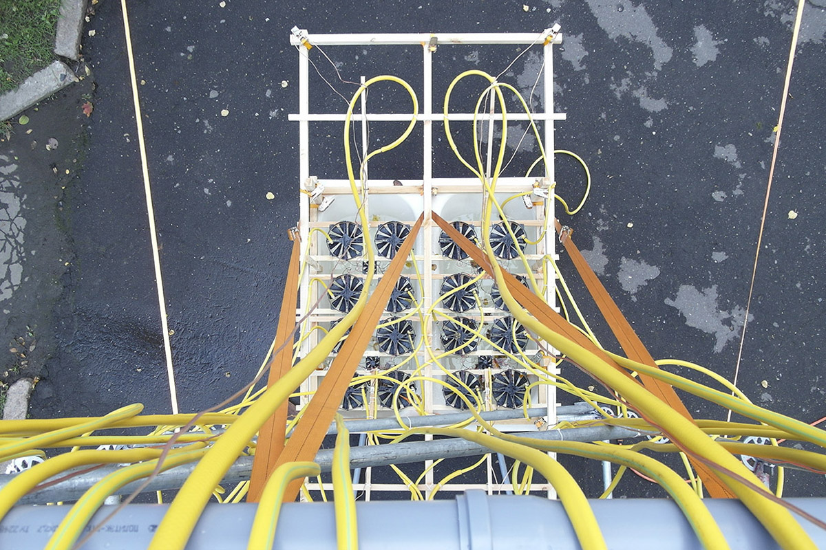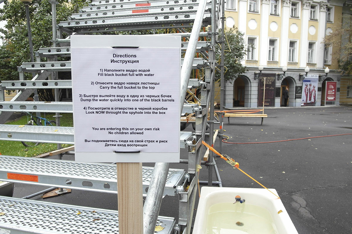 Enlightenment visualizes the energy potential of an individual’s physical exertion in the sense of an inefficient hydroelectric power plant. Like a storage power plant, recipients were invited to exert their physical strength to generate potential energy. Small turbines at the base of the platform then converted this kinetic energy into electricity.