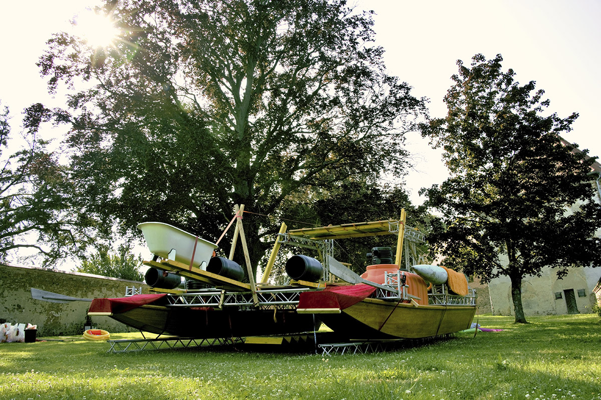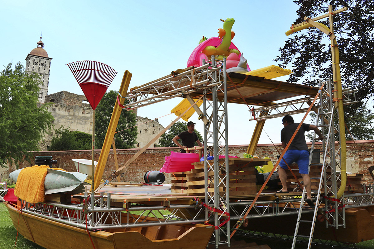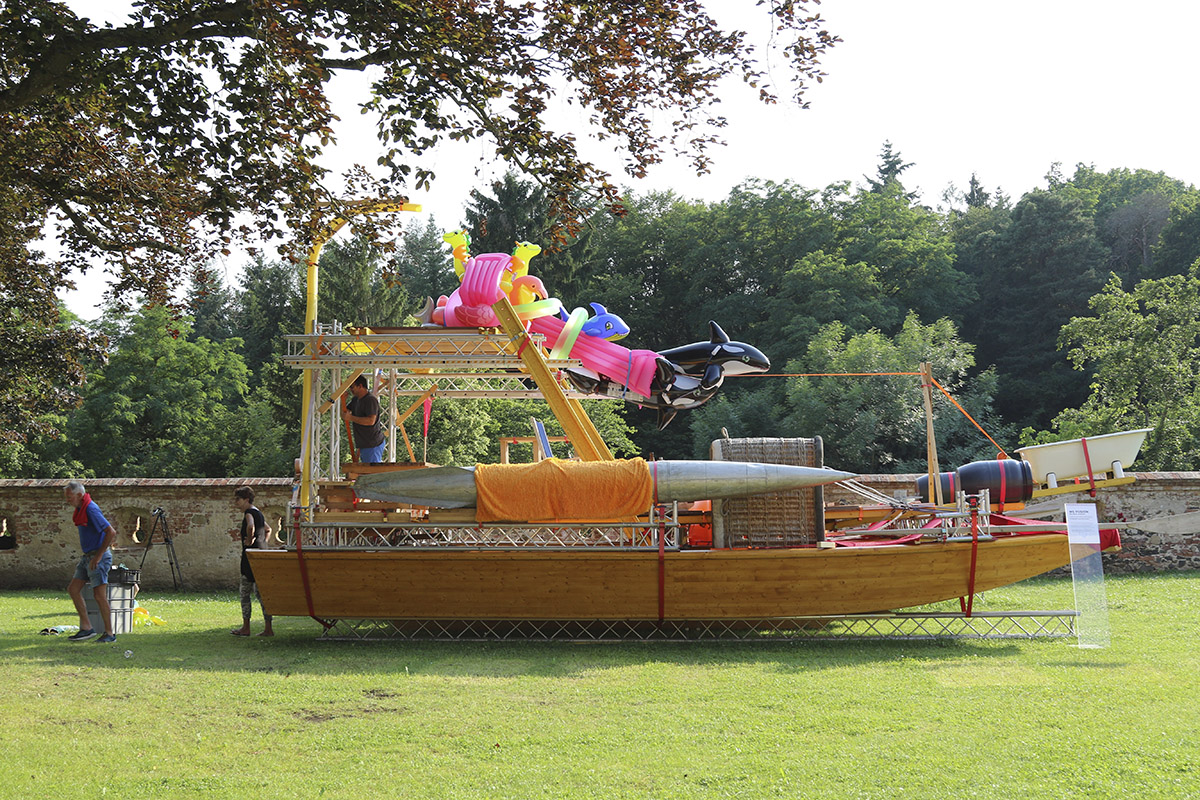 The MS-FUSION vessel fuses traditional Danube navigation watercraft, such as zills, with ready-made plastic tanks and other unorthodox components mostly familiar from hardware stores. The finished vehicle sees itself as a collage spanning epochs, most comparable to sculptural "samples". Thanks to its modular design, it remains flexible and changeable even when in use on the Danube.